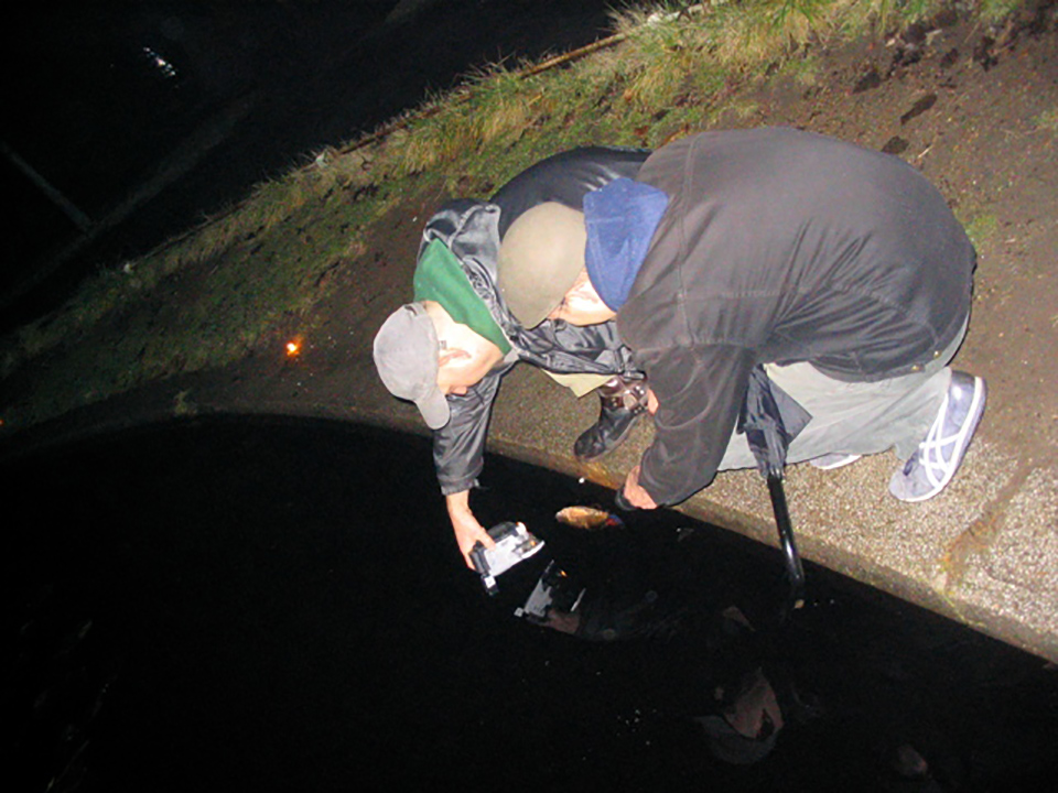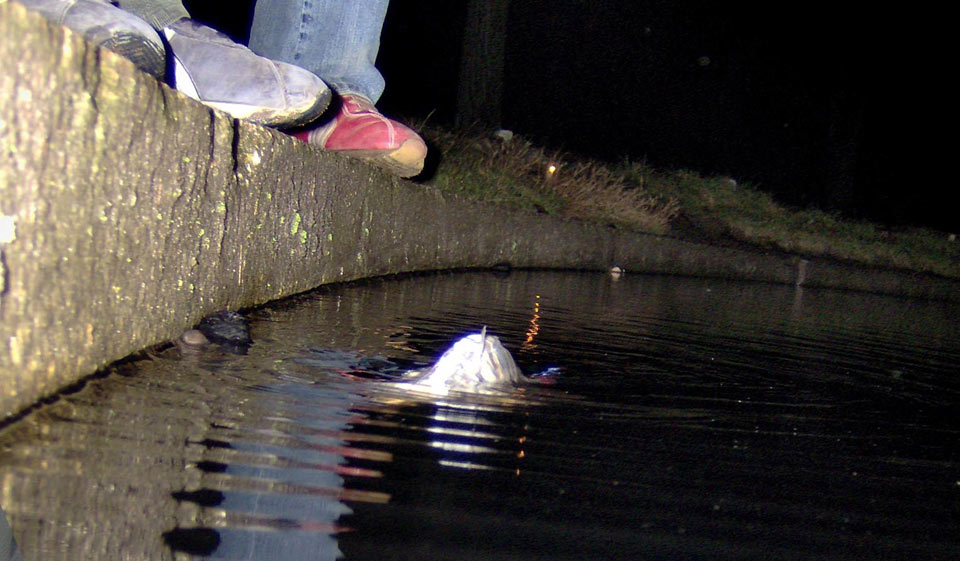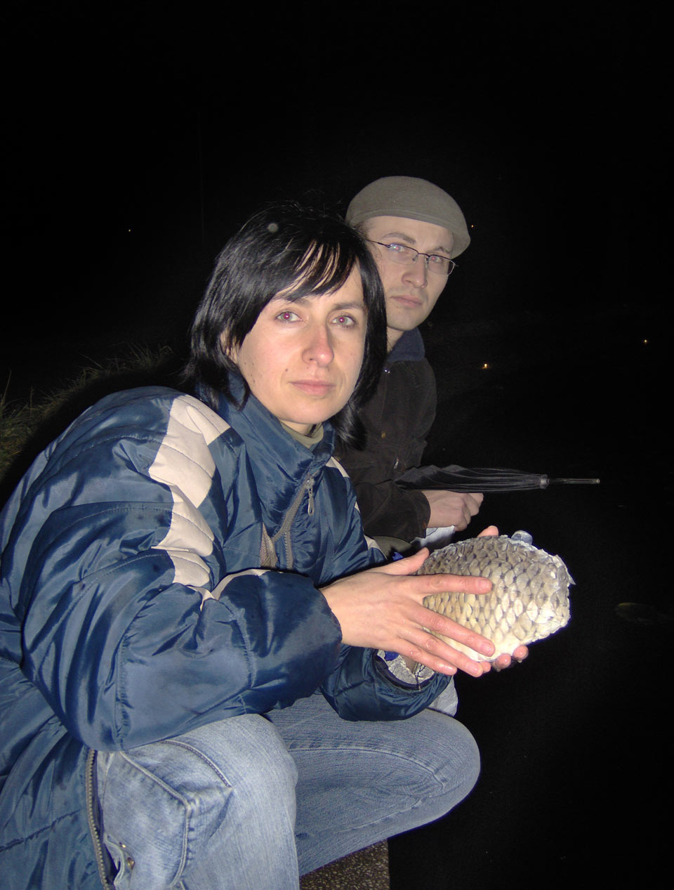 В кожата на обезглавен шаран зашихме пластмасова механична "риба". Сглобеният от органични и синтентетични материали апарат пуснахме да плава в Езерото с лилиите, Борисова градина. Една от целите на пърформанса бе възраждане загубения интензитет на мястото. По наше предположение сакрално, съзнателно или несъзнателно изградено не просто като архитектурен комплекс, а като действаща единна енергетическа система.