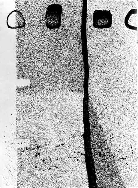 Column (I-IV) - Size: 70 x 50 cm, ink on paper, 1999, Anton Terziev. Courtesy of the artist Show at Didymoteicho, Greece, 1999 Photo: © the artist Anton Terziev’s Column (I–IV) is a visceral exploration of tension between form and formlessness. In the opening panel, a monolithic vertical plane, densely stippled, arrests the eye—only to be ruptured by dynamic drips and slashes that seem to shake free from the drawing’s strictures. As the series progresses, controlled granularity gives way to liberated gesture: looping ink filigrees entwine with clusters of precise hatching, while spontaneous blotches puncture the composition like unexpected exhalations. By the fourth tableau, Terziev achieves a potent synthesis of architecture and anarchy. A bold, rectilinear mass rises from an undulating field of frenetic lines, its interior alive with a microcosm of marks that evoke both cellular webs and cosmic voids. Scattered droplets hover across this textured stage, at once violent and serene, conjuring the primordial forces at play beneath the surface. Across all four works, the artist’s ink inhabits a liminal space—where rigor confronts impulse and structure yields to entropy—inviting viewers into the raw alchemy of the unconscious. |