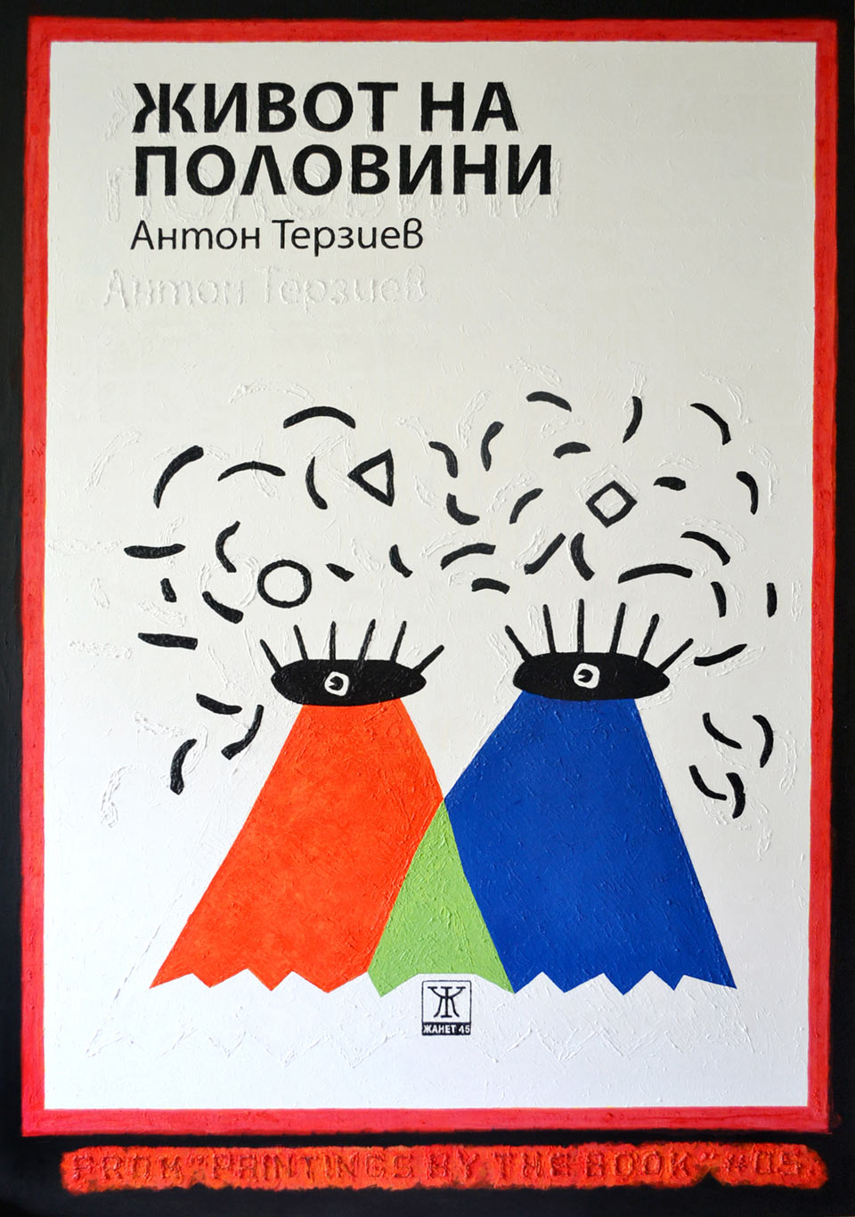 Have you ever wondered how does a writer paint and a painter writes? Well Anton Terziev is giving an answer with his project “Paintings By the Book” (2015) This project is a period that consists of five paintings representing the five book covers of his five published books. A painting is 208 x 145 cm. But this project is not about painting nor writing nor is about the fusion of these two. The idea is even more so simple...when you have the means and tools why not do it?
