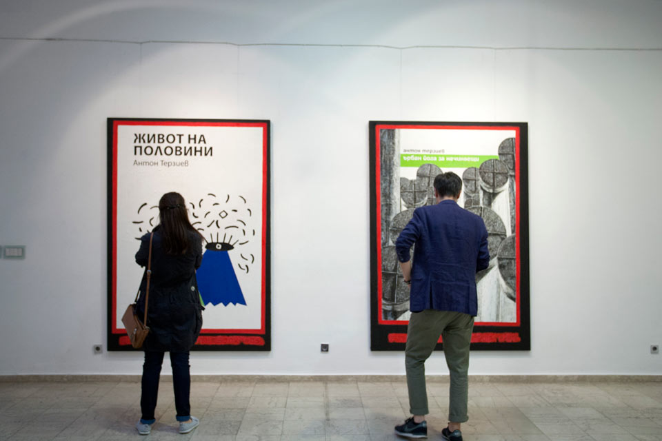 Paintings By The Book's project observes the social-economy of art as a choice and as a career and at the same time as a riddle and challenge. As a short story writer, author of already 5 published books, Anton Terziev develops another – outside-of-visual arts authorial voice, biography, public image. Here, he tries to determine the variables of overlapping and divergence between commercial and artistic value. “Evaluating the chances of failure and success of an art product and the artist behind it.” Using the contemporary fascination of self-promotion and the potentcy of self-transmediation, Terziev cues on his painter instinct and objectifies the “product”, the bodies or covers of his commercially unsuccessful fiction books and depicts them as paintings.