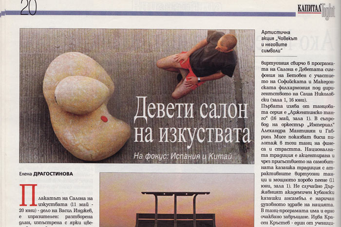 Студентствах на таван, къде ще ти прибера аз двеста кила из- печен шамот? Но преди пластиката да стане част от пейзажа, първо трябваше да я направя. Два месеца пътувах ежедневно до завод„Изида“ в Елин Пелин – най-енергетизираното място след Дупката в Царичина. Знаете, там е леговището на Big Brother, а наблизо, в Нови хан, е и приютът на отец Иван. В керамичния завод общувах с големи байовци, които за разлика от теб и мен бяха винаги в добро настроение, лочеха евтина бира, обстрел- ваха със солени шеги„мацки“ 50-и набор, а в еластичните като чорап почивки се деряха по третодивизионни мачове на запис. Заразително спонтанно, небрежно, все едно животът им не беше се изплъзнал отдавна по поточната линия.