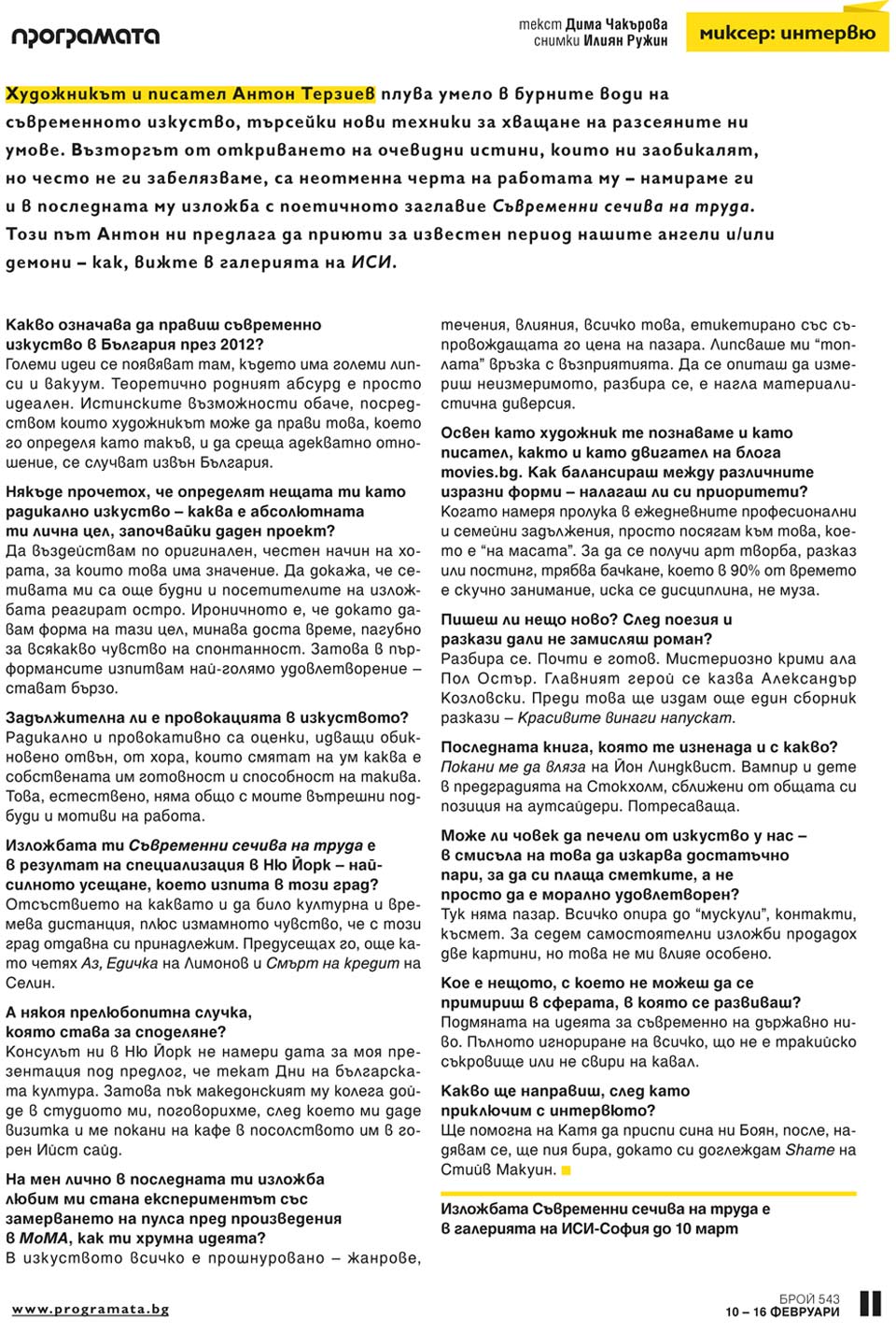 Материал за изложбата "Скришни игри" в egoist.bg - ТУК; за "Малки победи" - ТУК